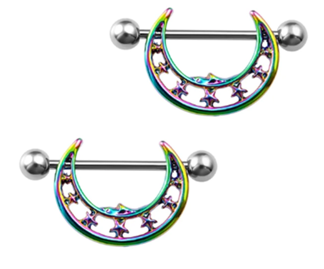 Piercing Para Pezón X2 Acero Luna Tornasol